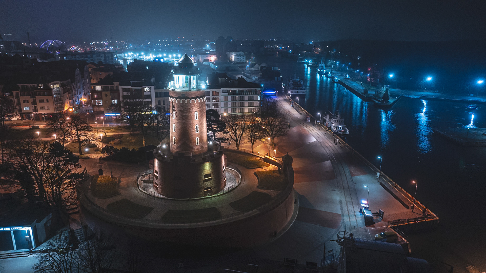 Katedra Kołobrzeg nocą Dronfoto