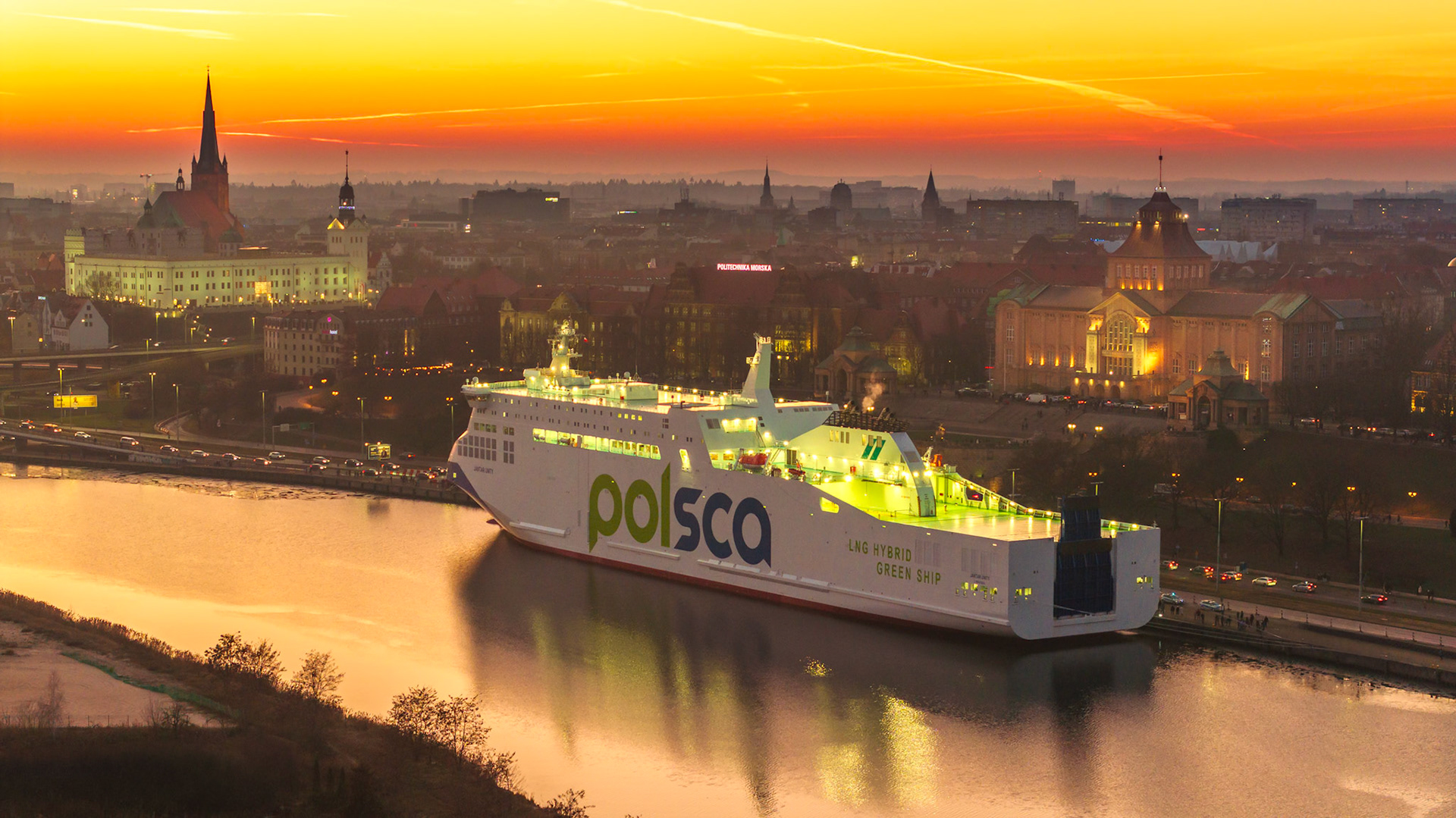 Katedra Kołobrzeg nocą  Dronfoto