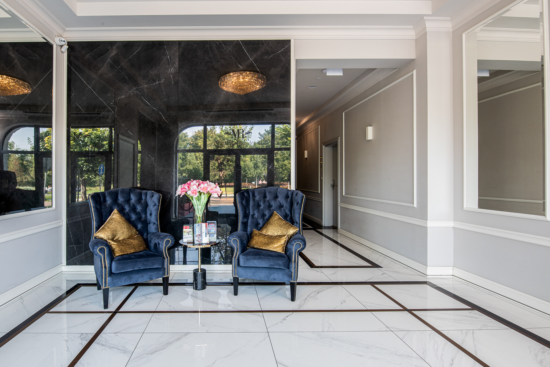 Łazienka w apartamencie — [Międzyzdroje]. Oświetlenie podkreśla materiały i faktury.